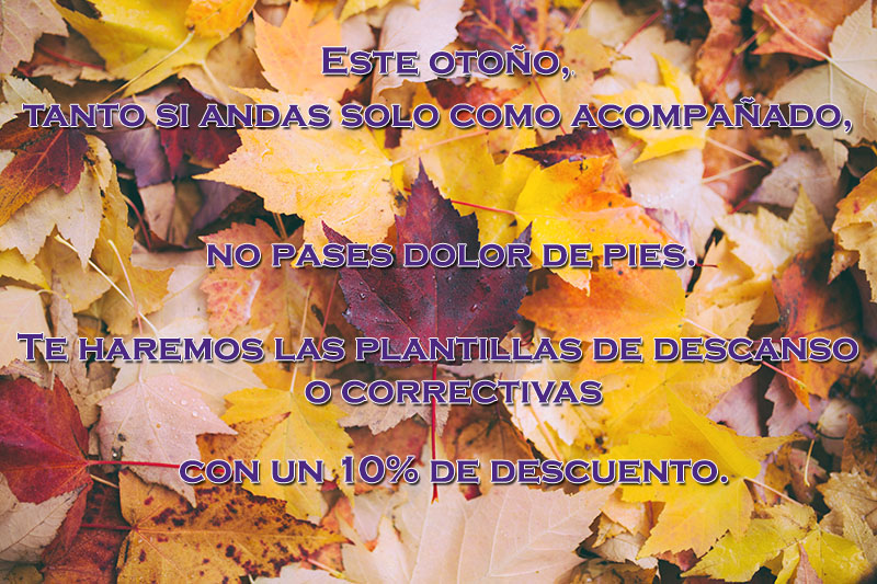 Este otoño, tanto si andas solo como acompañado, no pases dolor de pies. Te haremos las plantillas de descanso o correctivas con un 10% de descuento.